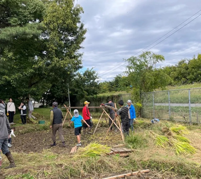 みんなで収穫して、天日干しにましょう。